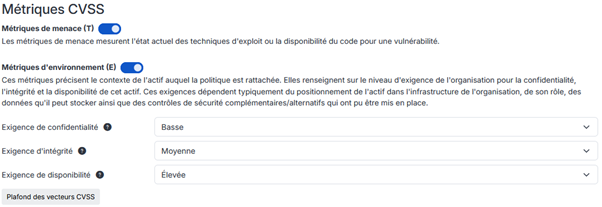 Dans Cyberwatch, cette priorisation repose d’abord sur la définition d’une politique de criticité pour chaque actif. Chaque périmètre se voit attribuer des exigences de Confidentialité, Intégrité et Disponibilité (CIA) qui permettent de recalculer un score CVSS contextuel : le CVSS-BTE.