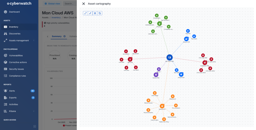 With Cyberwatch, you can turn this visibility into concrete action: automatic mapping, analysis of real risks, intelligent prioritization according to your exposure context, and long-term management via dedicated dashboards.